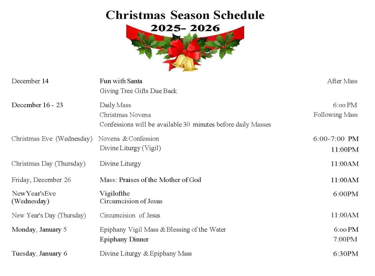 1. Children’s Christmas Mass and Lunch with Santa