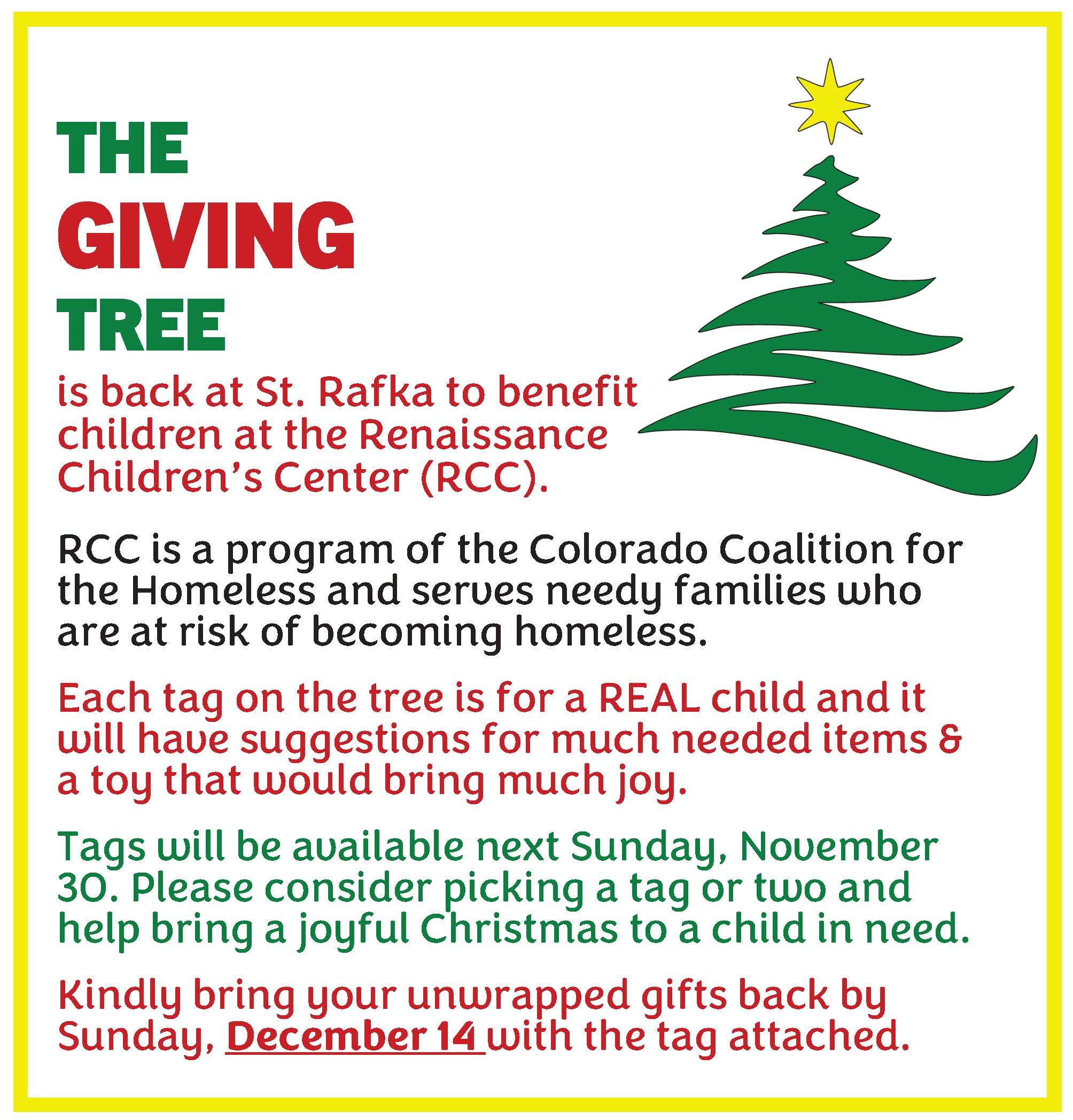 2. The Giving Tree gifts due Sun. Dec. 14th
