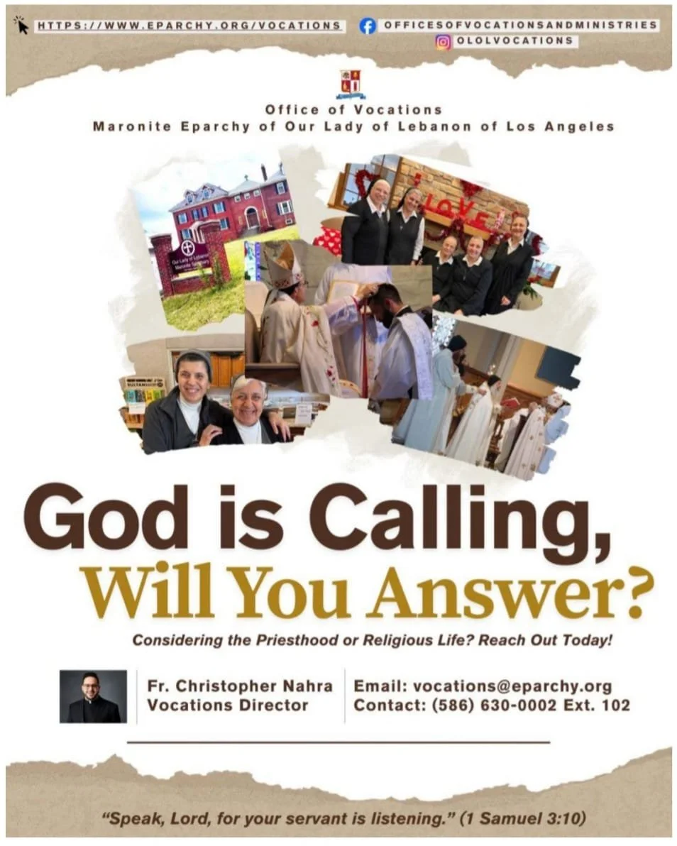 Join us in welcoming the newly appointed Vocations Director for our Eparchy, Fr. Christopher Nahra. He and the Office of Vocations will walk with men and women as they prayerfully discern God’s call in their lives to the Priesthood and Religious Life. May the Lord bless their efforts as they prepare the next generation of men and women for ministry in the Church through mentorship, formation, and prayer. Let us pray for more vocations to the Priesthood and Religious Life.